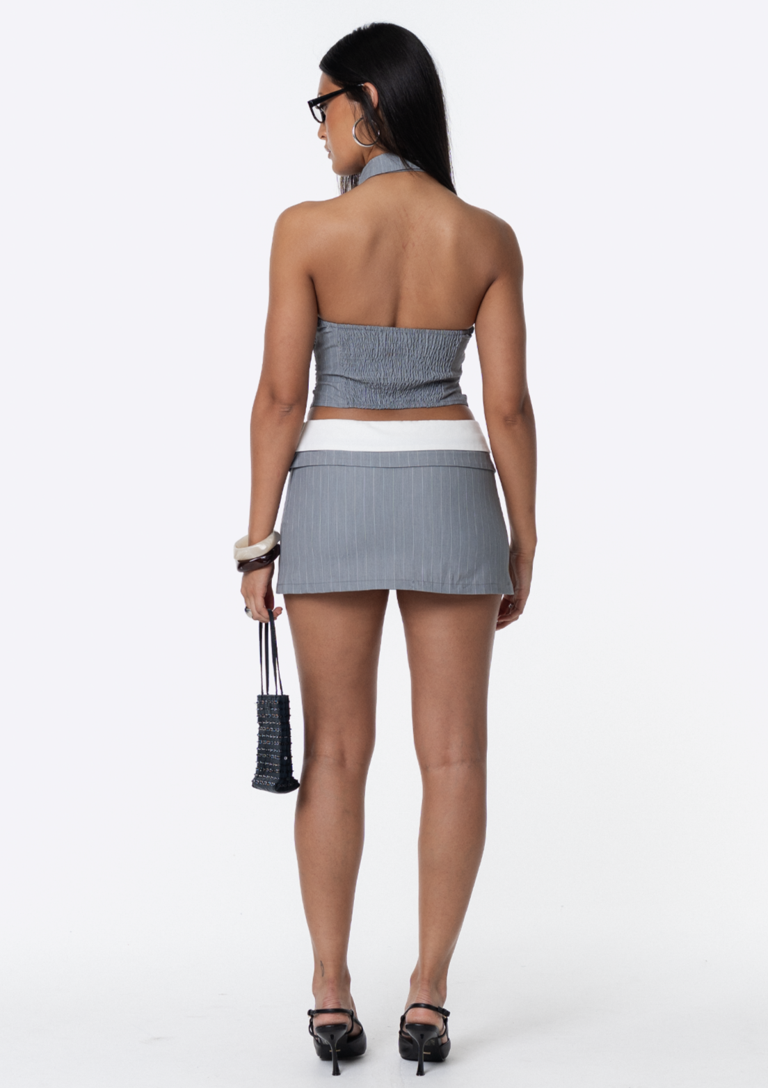Blaze Mini Skirt - Grey Pinstripe
