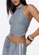 Introducing the JGR & STN Blaze Top. A halter neck design featuring a tailored collar and double zip down the centre. Pairs with our Blaze Mini Skirt or Remmie Pants.