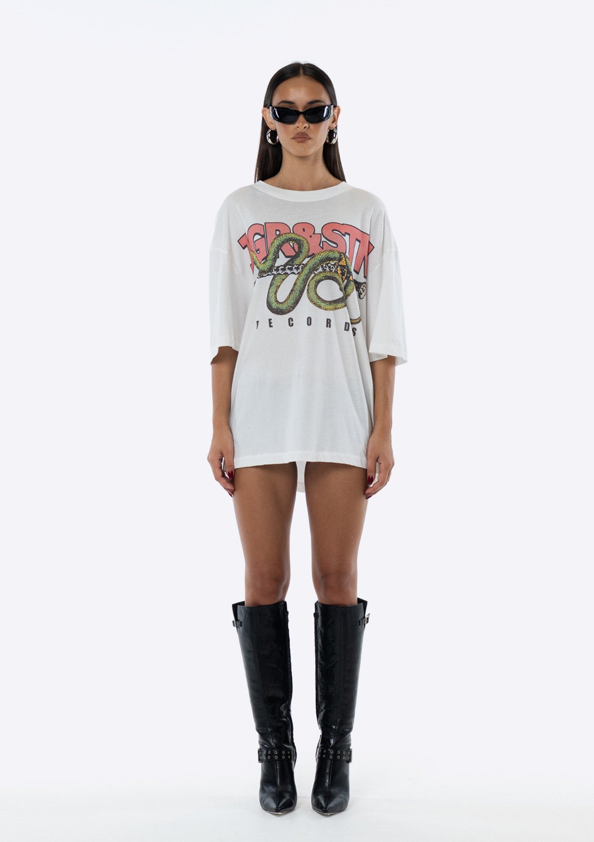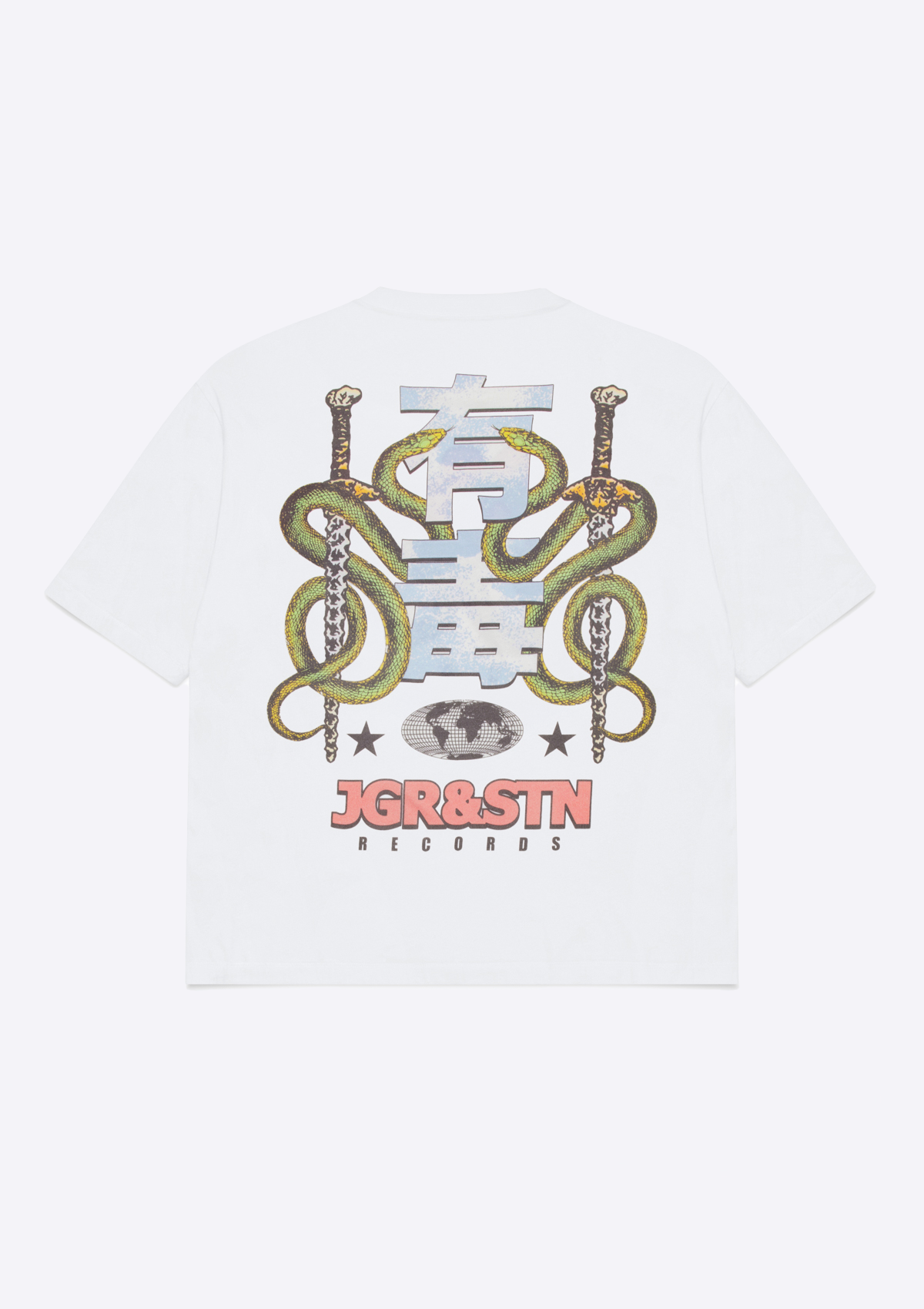 Introducing the JGR & STN Records Oversized Tee. Crafted in a soft, vintage-feel fabric and featuring printed graphics on the front.