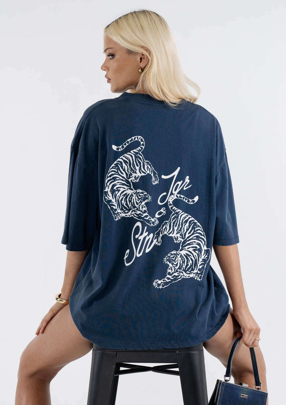 Introducing the JGR & STN Tiger Oversized Tee. Our best selling tee in a new colour! This tee is an oversized fit and crafted from soft, vintage-feel fabric. Featuring JGR & STN branding and tiger print on the back.
