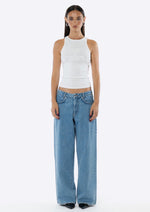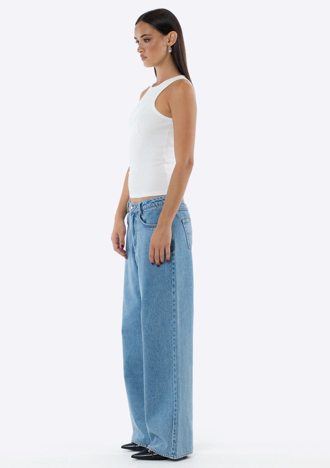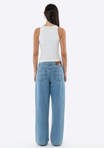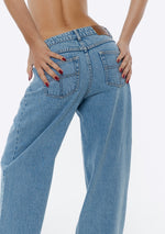 Introducing the JGR & STN Vintage Mid Baggy Jean. Designed to be a wardrobe staple. These jeans are a mid rise design with a light vintage wash. To wear the jeans low rise, we recommend sizing up.