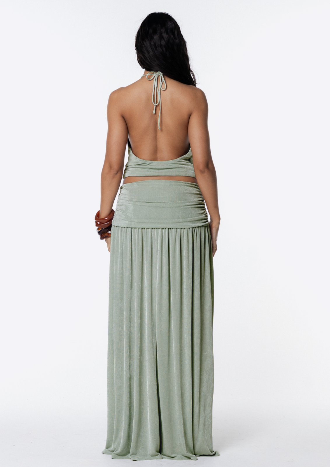 Introducing the JGR & STN Maria Maxi Skirt. This skirt is designed to flatter and fall effortlessly along the body. Featuring a ruched waistband and side splits. Pairs perfectly with our Maria Halter Top.
