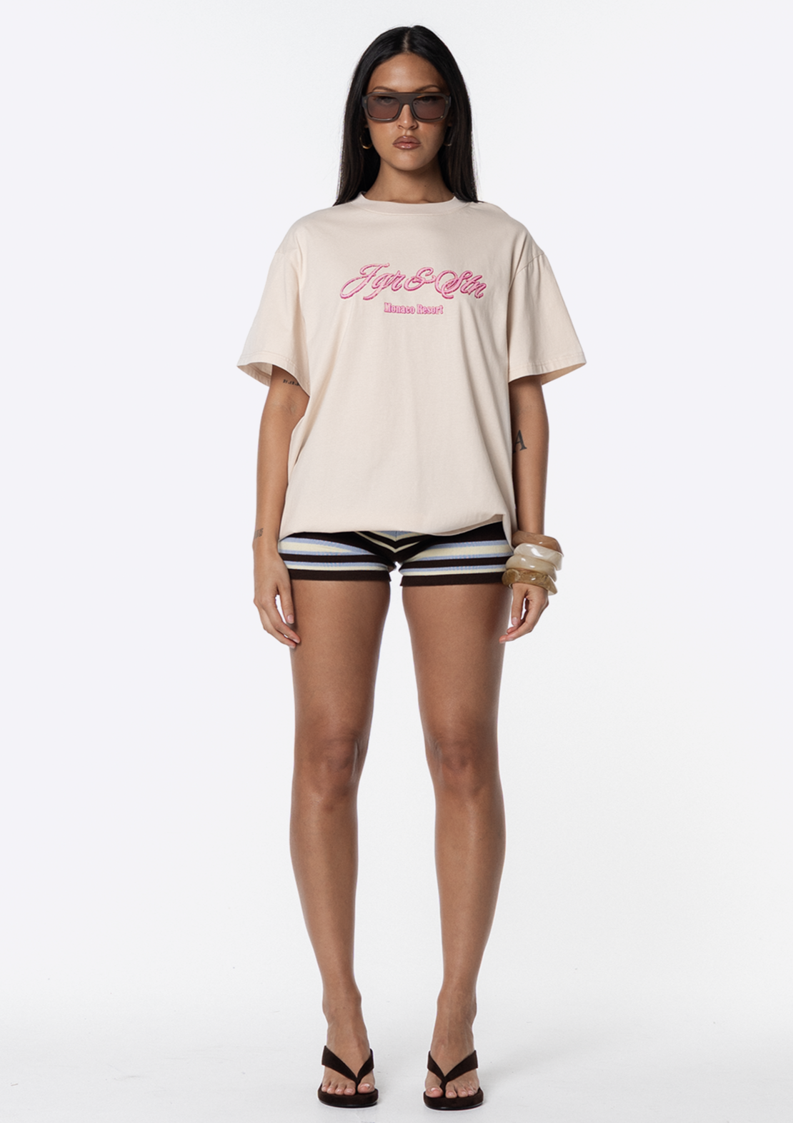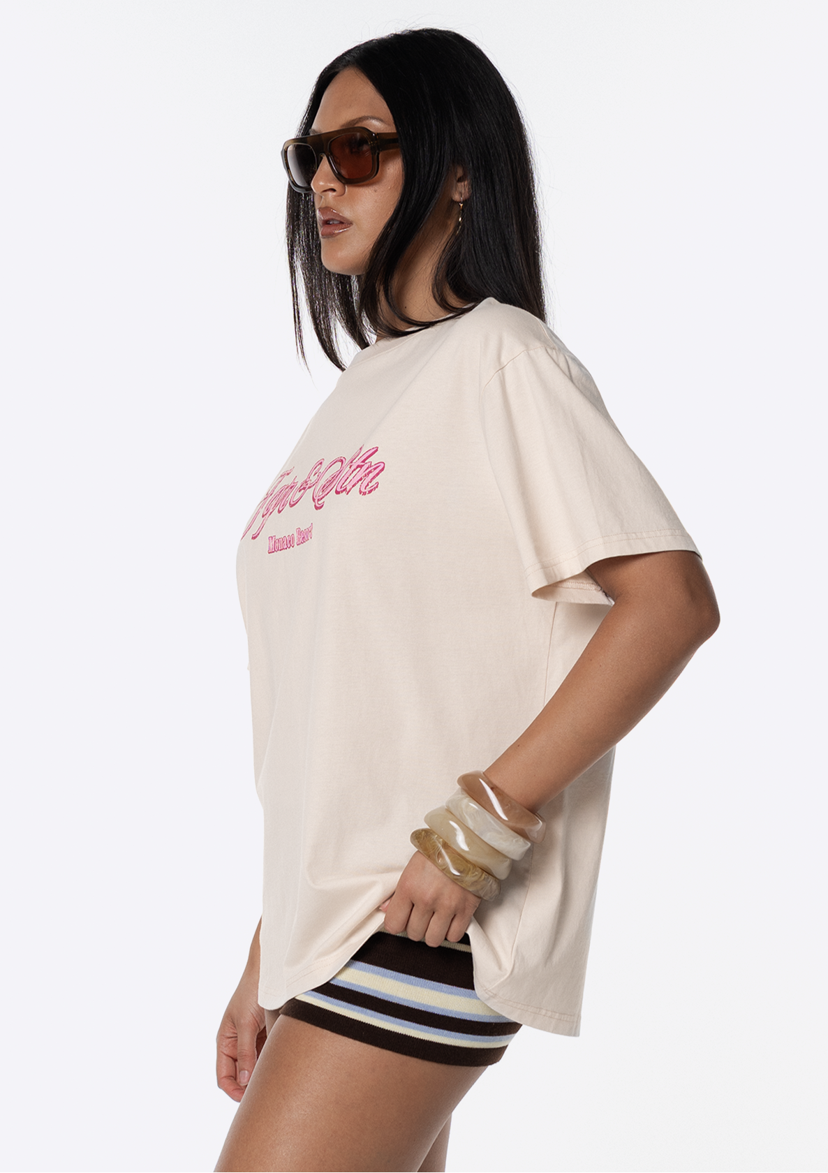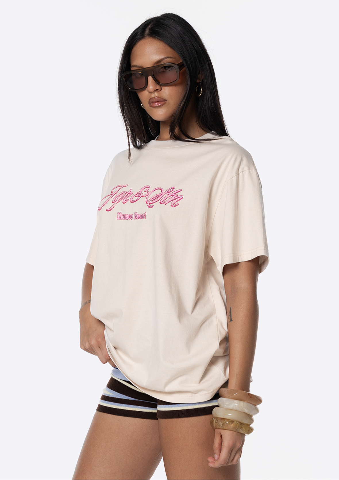 Introducing the JGR & STN Holiday Oversized Tee. Crafted in a soft, vintage-feel fabric and featuring printed graphics on the front and back.
