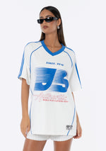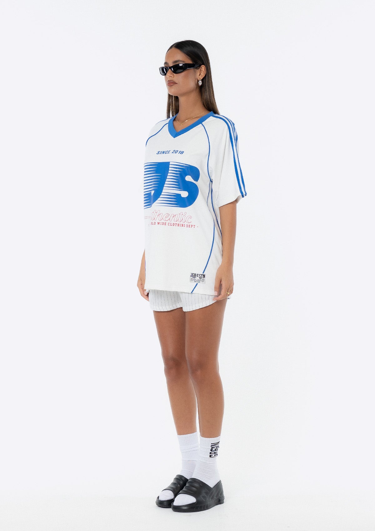 Introducing the JGR & STN Jade Jersey. Inspired by our favourite vintage sports jerseys. Featuring JGR & STN branding and graphic print.