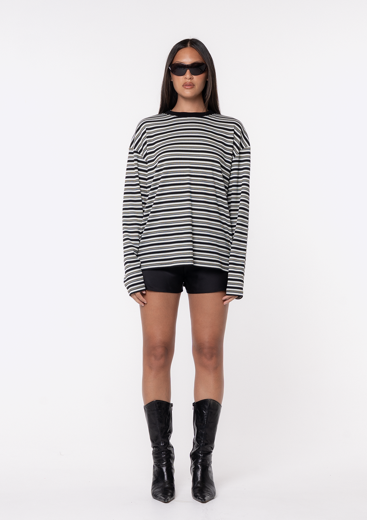 Introduction the JGR & STN Starred LS Oversized Tee. Featuring a custom stripe with star artwork on the elbows. Designed to wear alone or as the perfect layering piece.