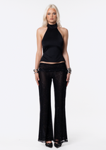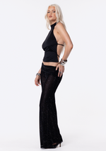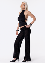 Introducing the JGR & STN Lucy Pants. The pants designed for party season. Made in a comfortable stretch mesh fabric and features a fold over waistband. The fabric has a subtle shimmer to make them stand out from any other black pant.